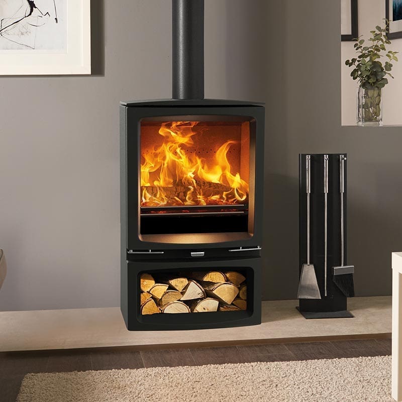 Available with Plinth or Midline log store base options, this modern-traditional wood burning and multi-fuel stove can be either installed into a fireplace opening or placed freestanding against a wall. The Vogue Medium is also compatible with our range of stove benches for an alternative but eye-catching installation.